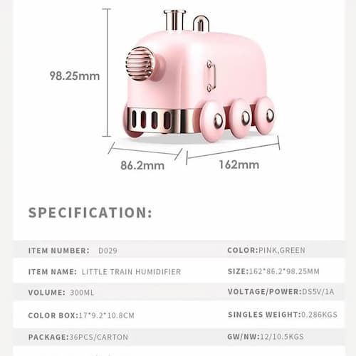 این رطوبت‌ساز کوچک و دوست‌داشتنی با طراحی قطار، نه تنها یک وسیله کاربردی بلکه یک اسباب‌بازی جذاب برای کودکان است.